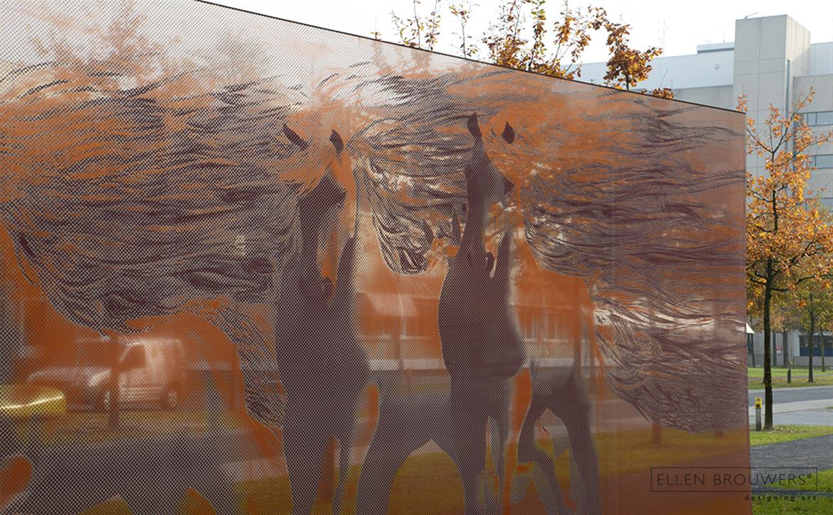 'Bij  iedere opdracht ga ik me verdiepen in de historie van het bedrijf en de betreffende plek.  Daarna maak ik een verbinding met mijn ontwerp.