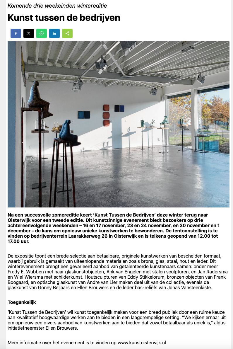 .Hedendaagse kunst - diverse disciplines- op een niet alledaagse locatie. Lees hier hoe KUNST tussen de bedrijven ooit begon