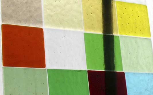 Glas appliqueren is een techniek waarbij stukken gekleurd glas op helder glas worden geplakt.