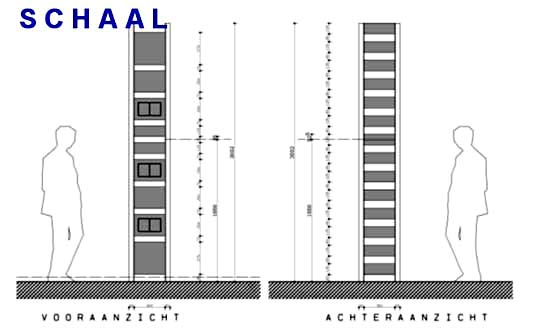 Hoog: 2,38 M, Breed: 0,50 M, Diep: 0,10 M