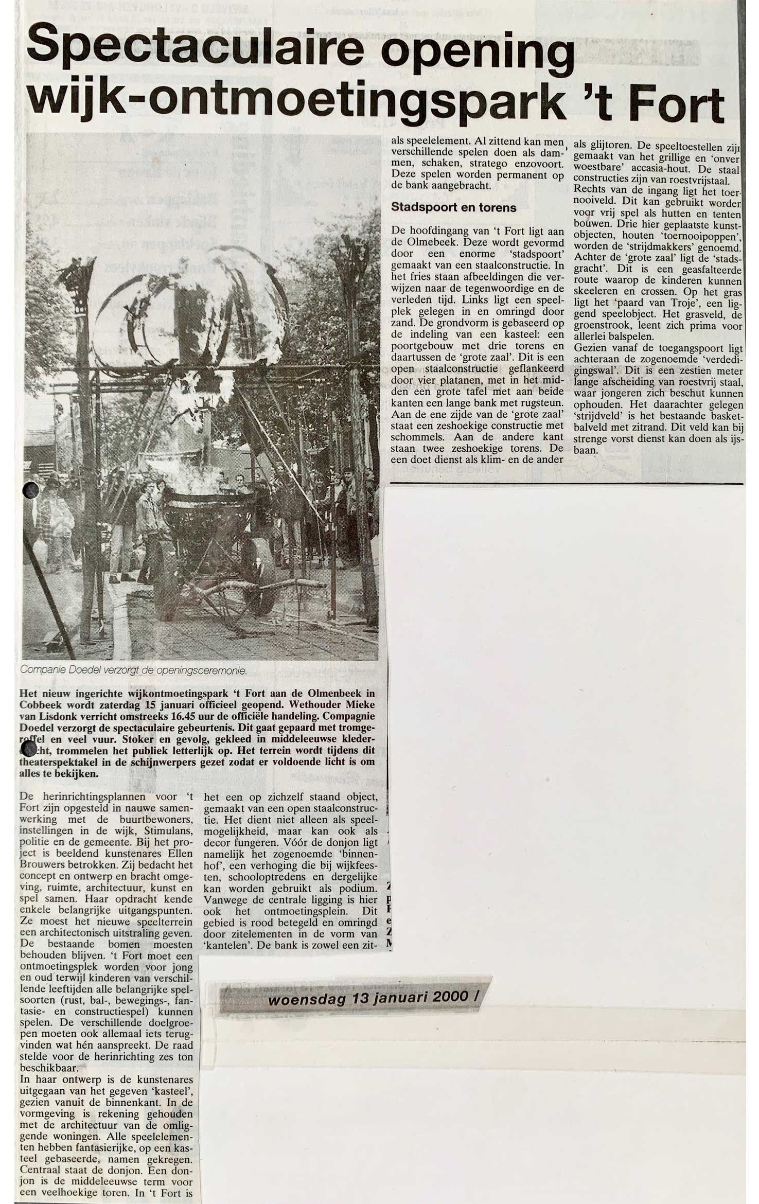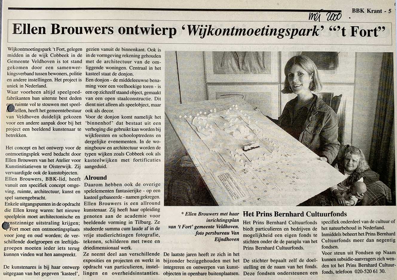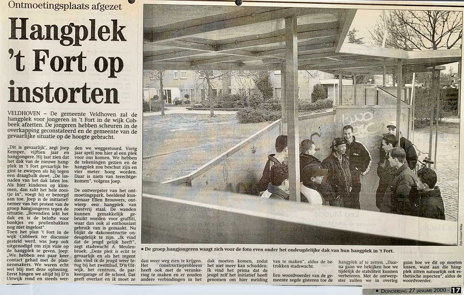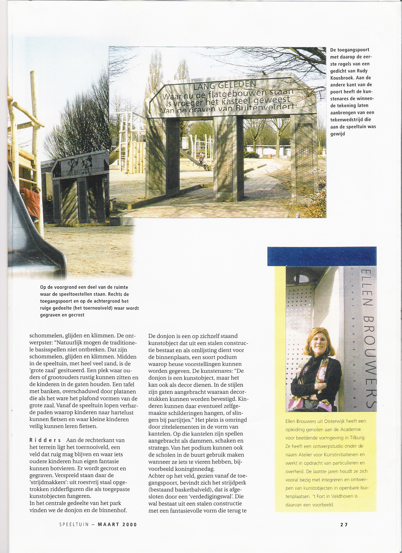 Ik beschrijf het archief van Rudy Kousbroek op het Literatuurmuseum. Daarin bevindt zich een brief van Ellen Brouwers van 18 oktober 1999 over het gebruik van een gedicht op een speelplaats in Veldhoven. U vraagt toestemming dit gedicht te gebruiken (als u degene bent die hem dit verzocht natuurlijk). Heeft Kousbroek hier ooit op geantwoord en zo ja is het gedicht verwerkt in de poort vn het speelterrein?