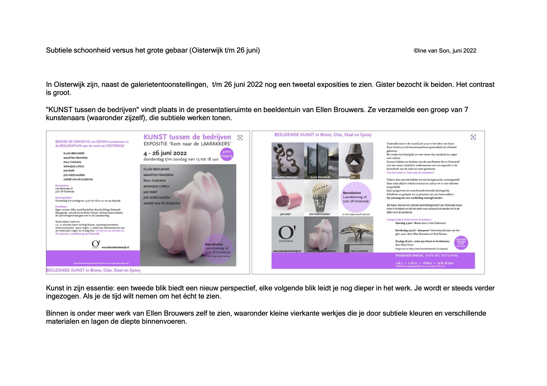 Oisterwijk staat in de maand juni 2022 in het teken van kunst. Door Covid-19 is het kunstenaarsleven grotendeels tot stilstand gekomen.